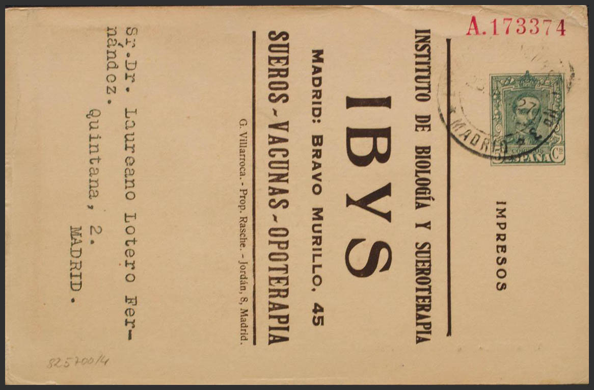EP508. 1927. 5 cts verde sobre Tarjeta Entero Postal Privada IBYS (Facultad Medicina Valladolid) Correo Interior de MADRID. MAGNIFICA Y RARA. (Láiz 2006: 350 Euros)