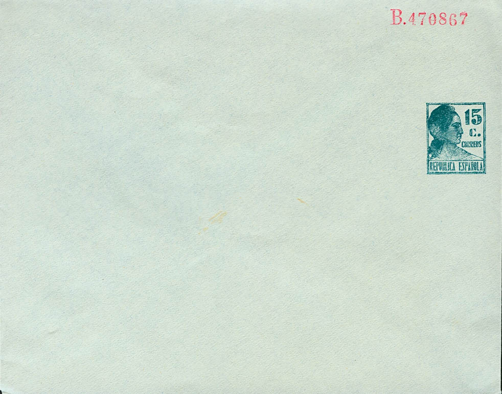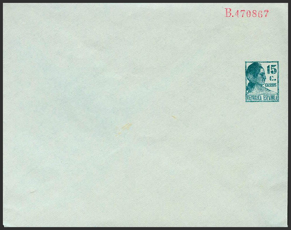 (★) EP1180. 1934. 15 cts azul sobre Entero Postal Privado. SIN IMPRESION DEL NOMBRE DEL TITULAR. MAGNIFICO. (Láiz 2000: 80 euros)