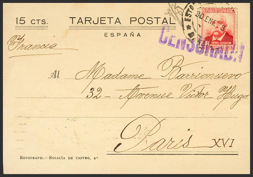 Entero Postal Privado. Tarjeta con una Tasa de 15 cts. MAGNIFICA Y MUY RARA.