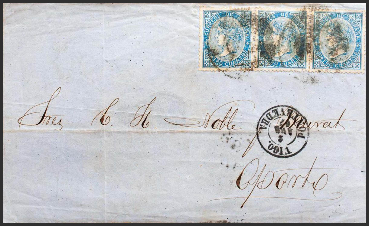 Isabel II. Periodo Dentado. Doble porte a Oporto. MUY RARO FRANQUEO.