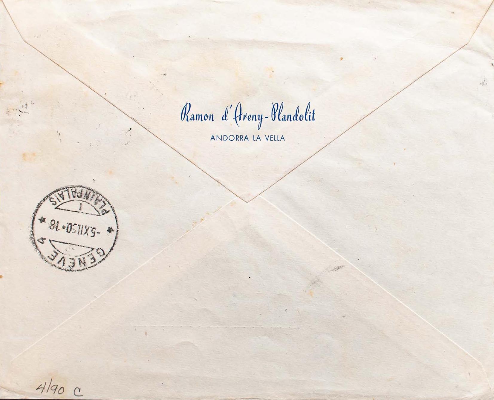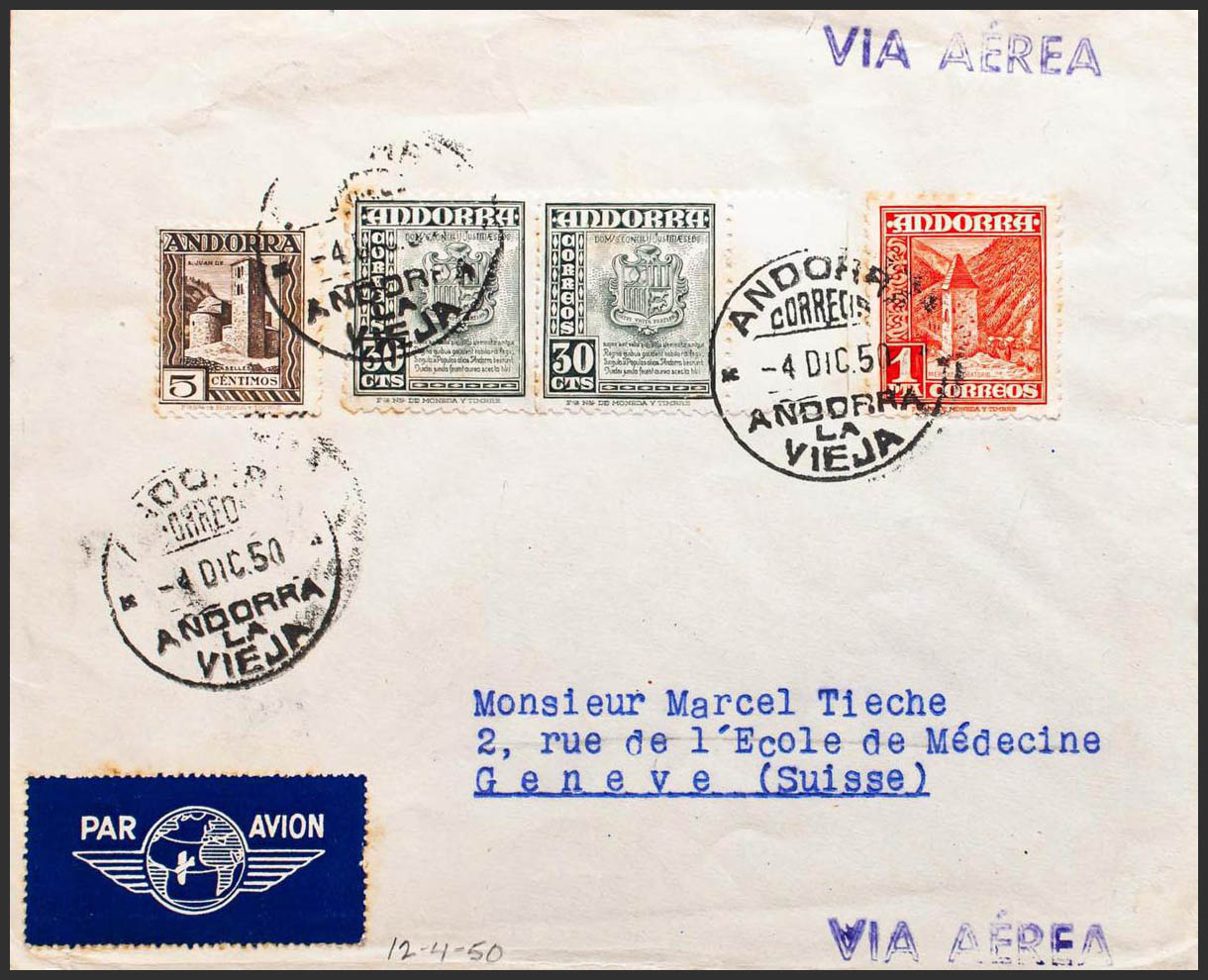 Andorra. Dirigida a SUIZA, al dorso llegada. MAGNIFICA Y ESPECTACULAR.