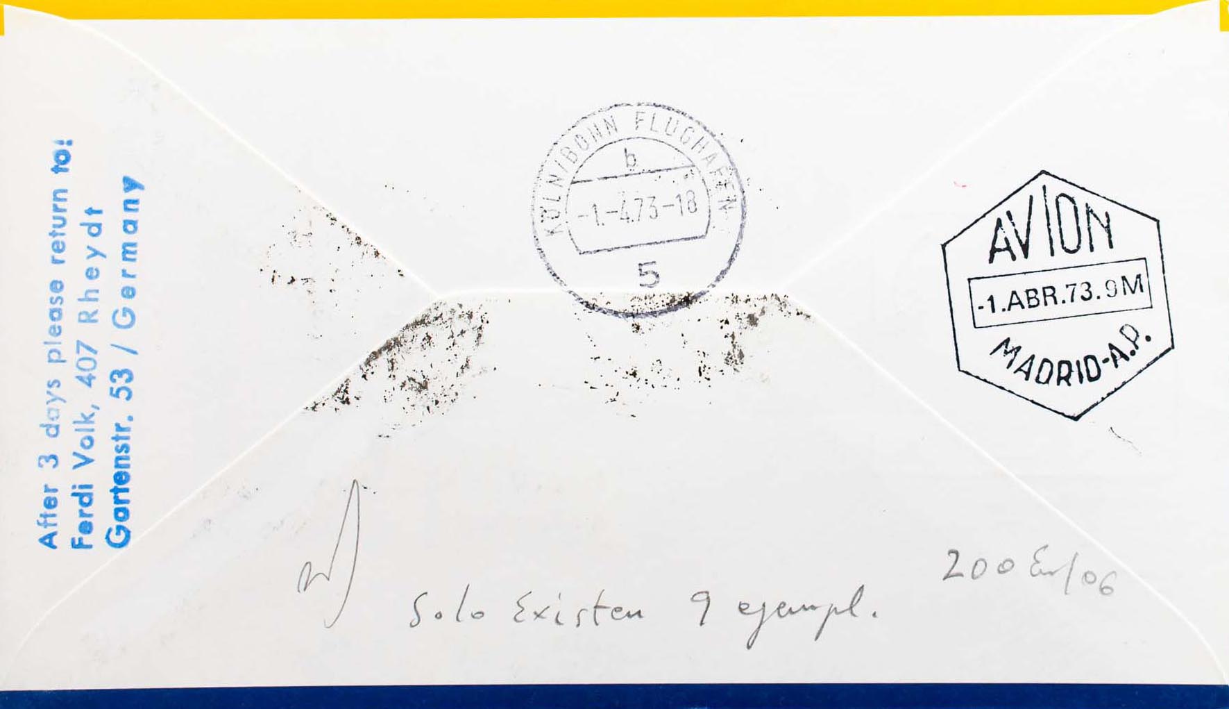 Andorra. 1º VUELO MADRID-COLONIA, al dorso llegada. MAGNIFICA.