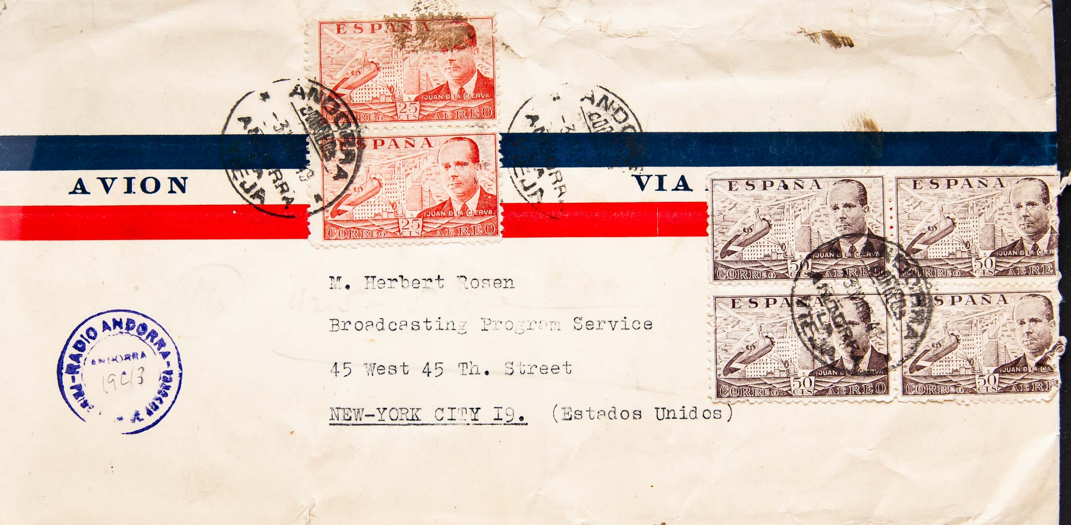Andorra. ANDORRA / LA VIEJA, sobre sellos españoles. MAGNIFICA.