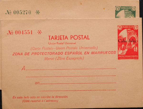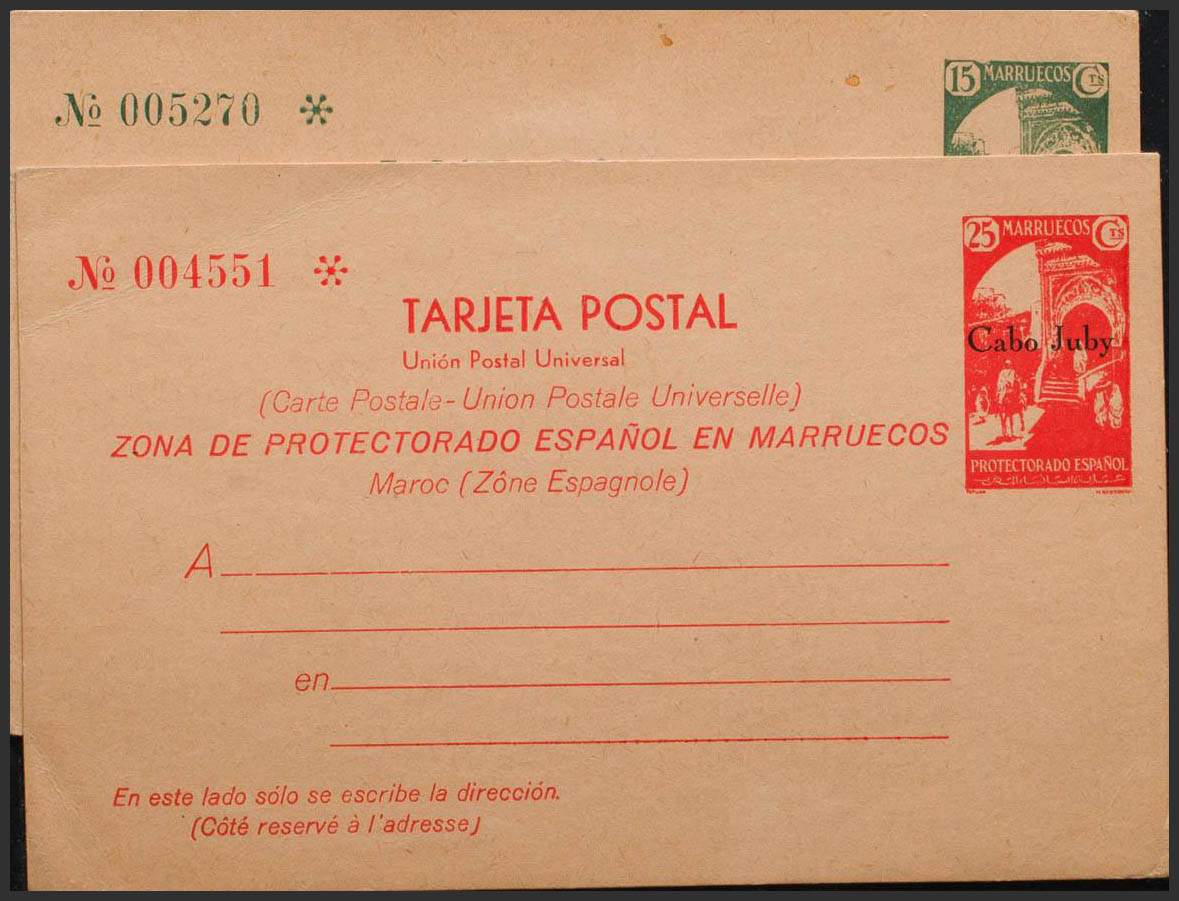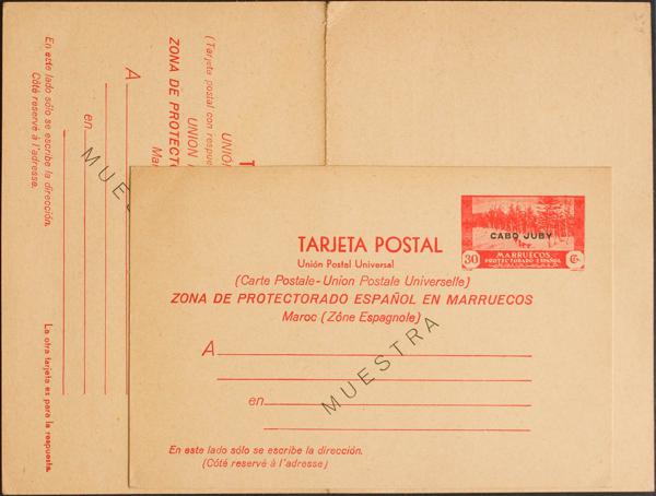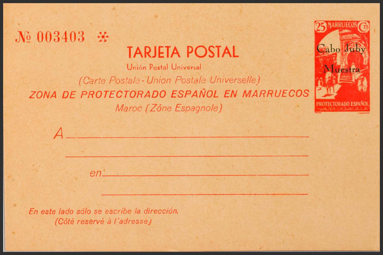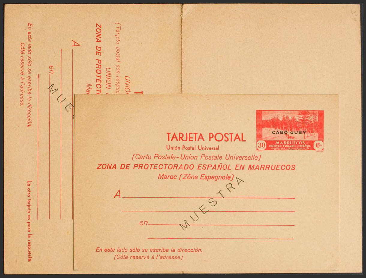 Cabo Juby. Entero Postal. E.P. 4M. Ida y Vuelta y MUESTRA.