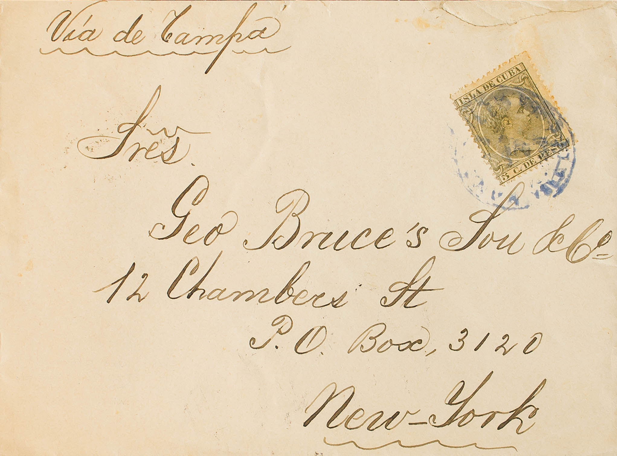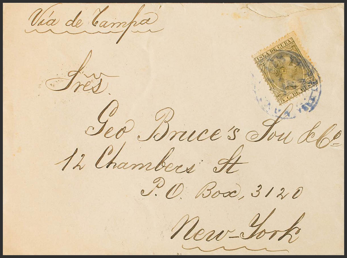 115. 1890. 5 ctvos verde grisáceo. MANZANILLO a NUEVA YORK. Al dorso llegada. MAGNIFICA E INUSUAL TARIFA DE IMPRESOS.