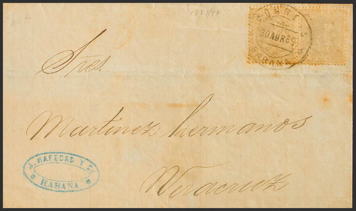 100(2). 1889. 5 cts gris, pareja. LA HABANA a VERACRUZ (MEJICO). MAGNIFICA E INUSUAL DESTINO.