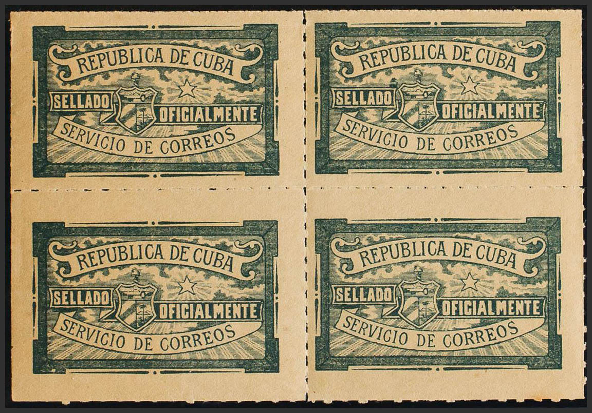 CO4(4). 1915. Sin valor, azul gris, bloque de cuatro, perforado "en lÃneas". MAGNIFICO.