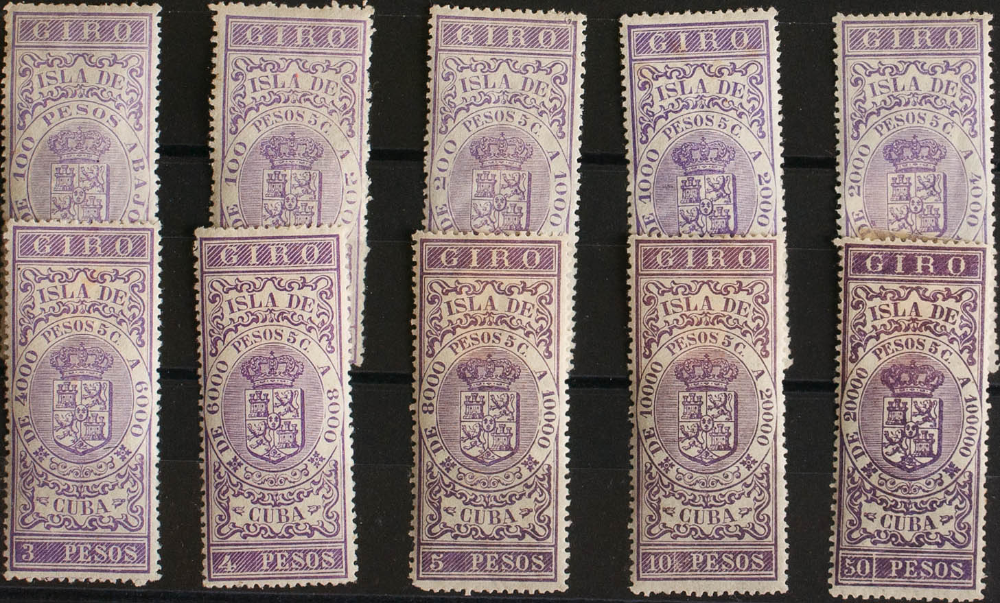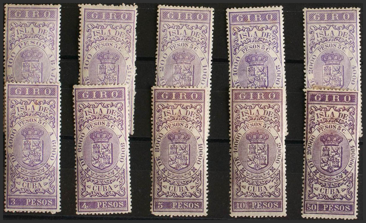★/(★)1885. SELLOS PARA GIRO de 1885. Serie completa, diez valores. MAGNIFICA Y MUY RARA. (Jones and RodrÃguez CA128/37)