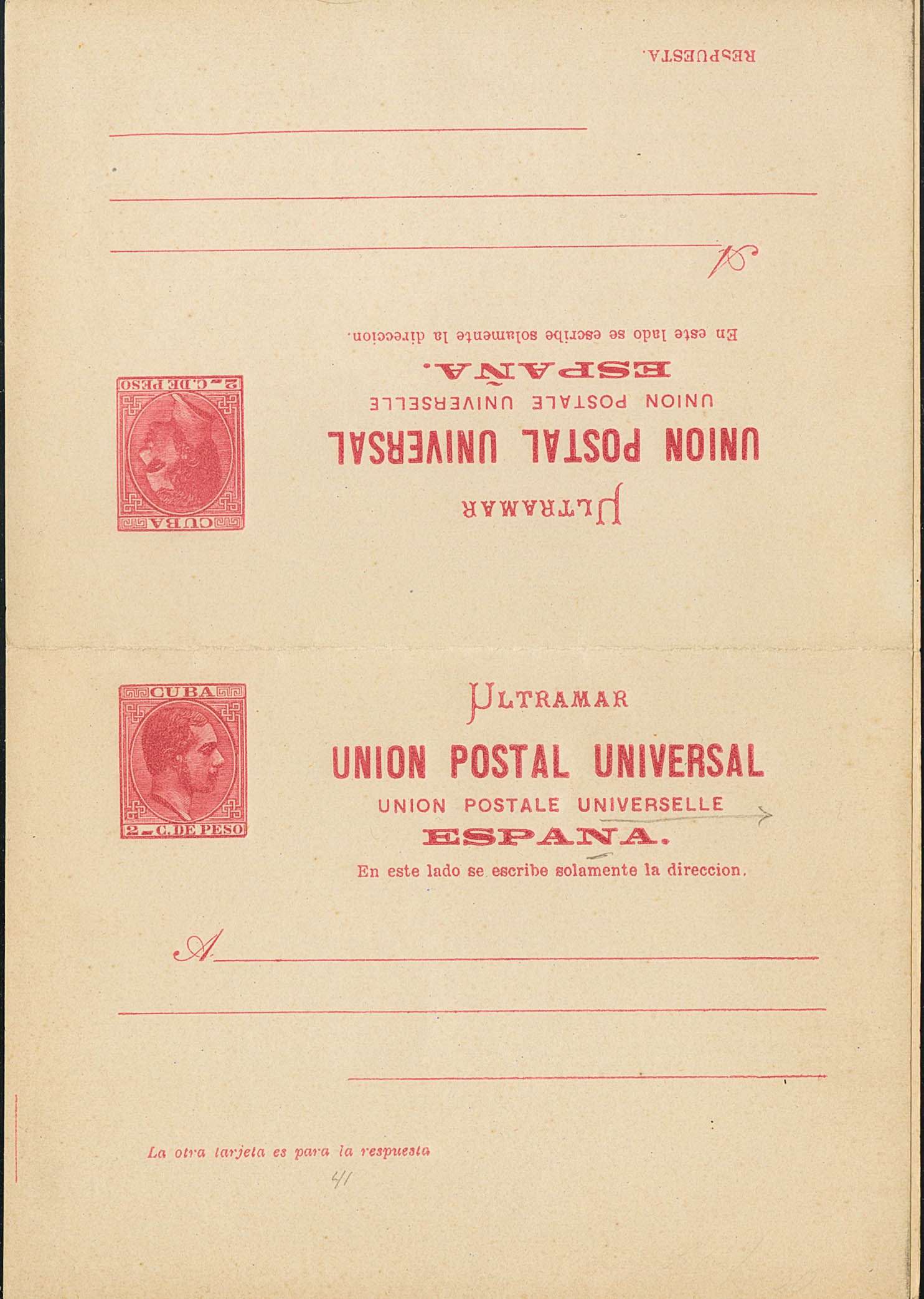 (★) EP11Ca, EP12Ca. 1882. 2 cts + 2 cts carmín y 3 cts + 3 cts rosa sobre Tarjetas Entero Postales, ambas con la variedad "SIN TILDE EN LA Ñ" de España. MAGNIFICA Y RARA. (Láiz 2006, 230 Euros)