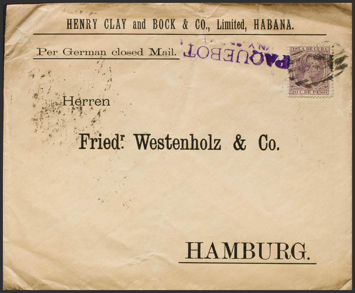 Cuba. PAQUEBOT. Al dorso llegada. MAGNIFICA.