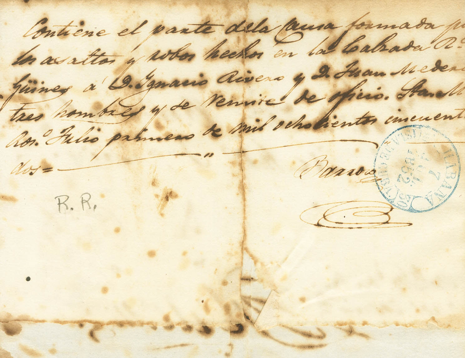 1852. GUANABACOA a LA HABANA. Baeza GUANABACOA / ISLA DE CUBA, en tinta de escribir. MAGNIFICA.