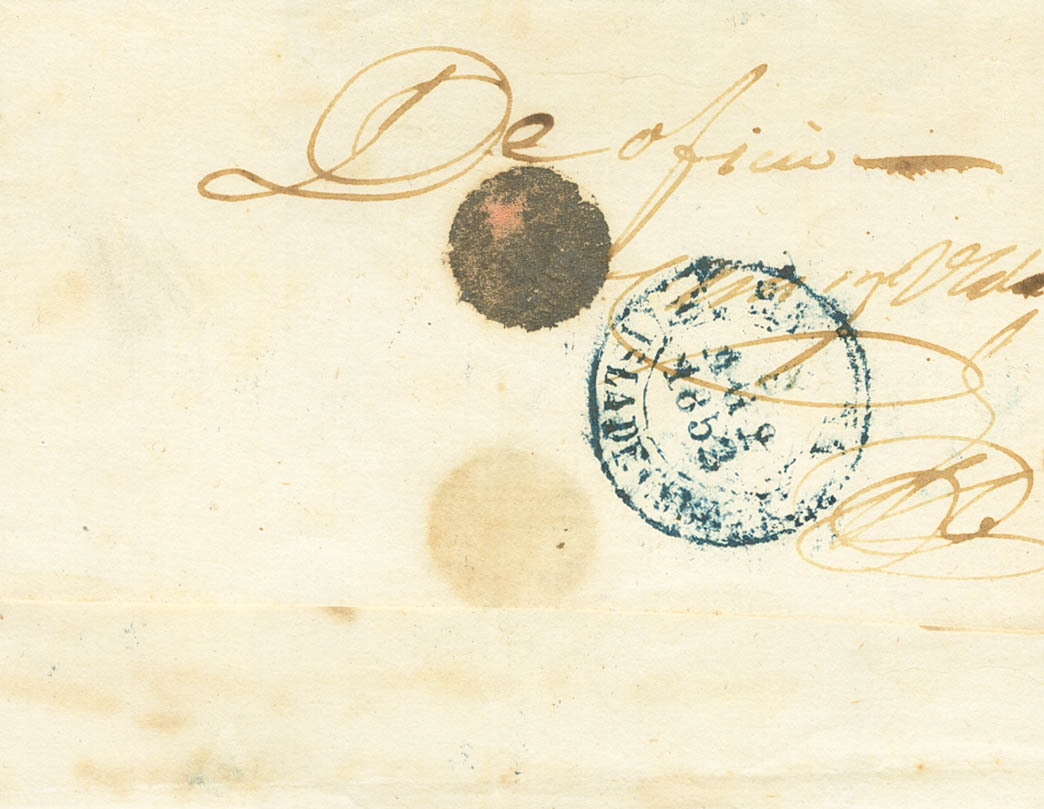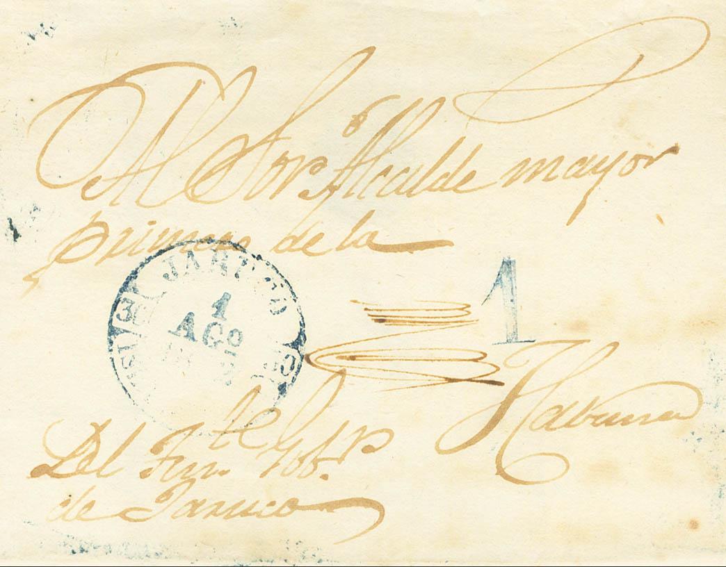 1852. JARUCO a LA HABANA. Baeza JARUCO / ISLA DE CUBA, en azul. MAGNIFICA Y MUY RARA.