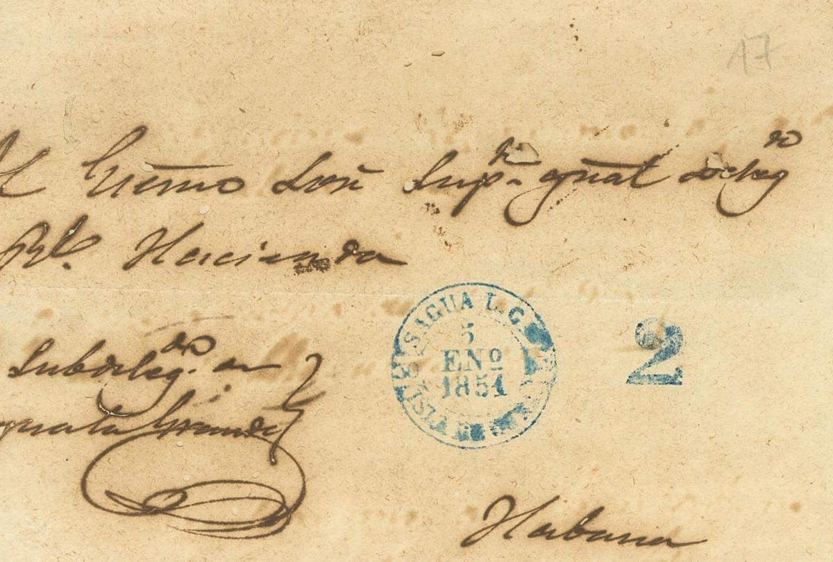 1851. SAGUA LA GRANDE a LA HABANA. Baeza SAGUA L.GDE. / ISLA DE CUBA, en azul. MAGNIFICA Y RARA.
