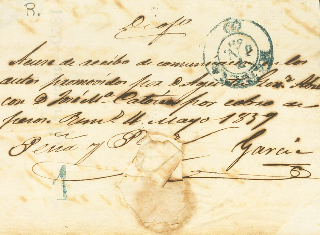 1859. SAN JUAN DE LOS REMEDIOS a LA HABANA. PARRILLA COLONIAL, aplicada para indicar que la carta circulaba franquiciada y baeza REMEDIOS / ISLA DE CUBA, en azul. MAGNIFICA Y RARA.