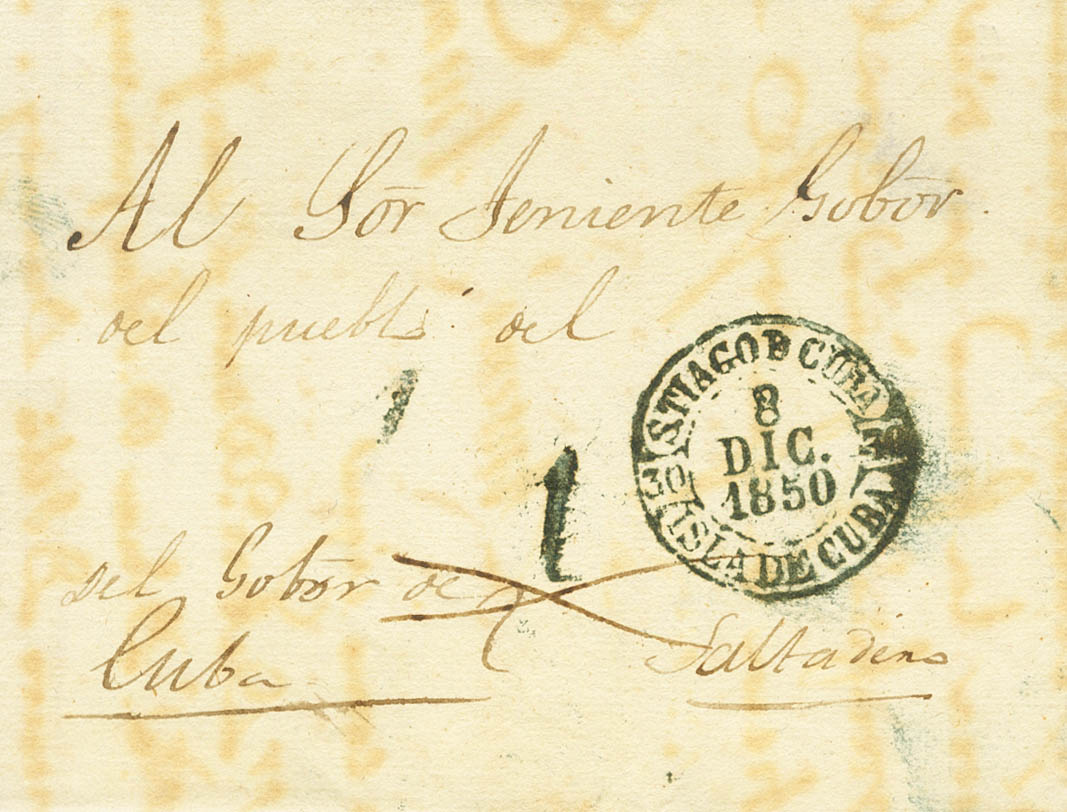 1850. SANTIAGO DE CUBA a SALTADERO. Baeza S.TIAGO DE CUBA / ISLA DE CUBA, en azul. MAGNIFICA.