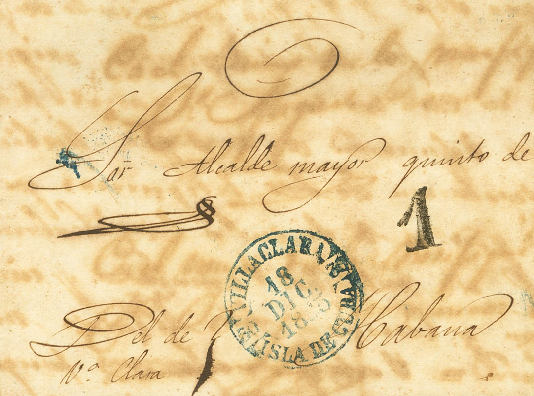 1855. VILLA CLARA a LA HABANA. Baeza VILLACLARA / ISLA DE CUBA, en azul. MAGNIFICA.