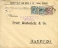 149(2), 151. 1897. 5 cts azul, dos sellos y 20 cts malva. LA HABANA a HAMBURGO. Matasello numeral "12" y en el frente impreso PER GERMAN CLOSED MAIL. MAGNIFICA.