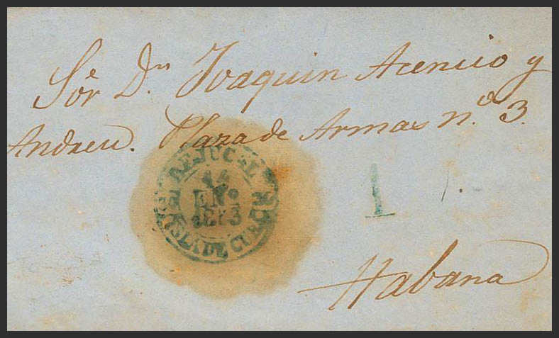 1953. BEJUCAL a LA HABANA. Baeza BEJUCAL / ISLA DE CUBA, en azul. MAGNIFICA Y RARA.