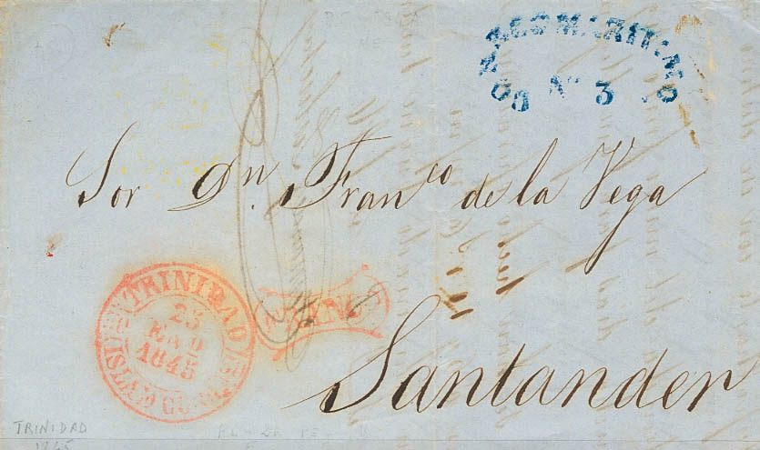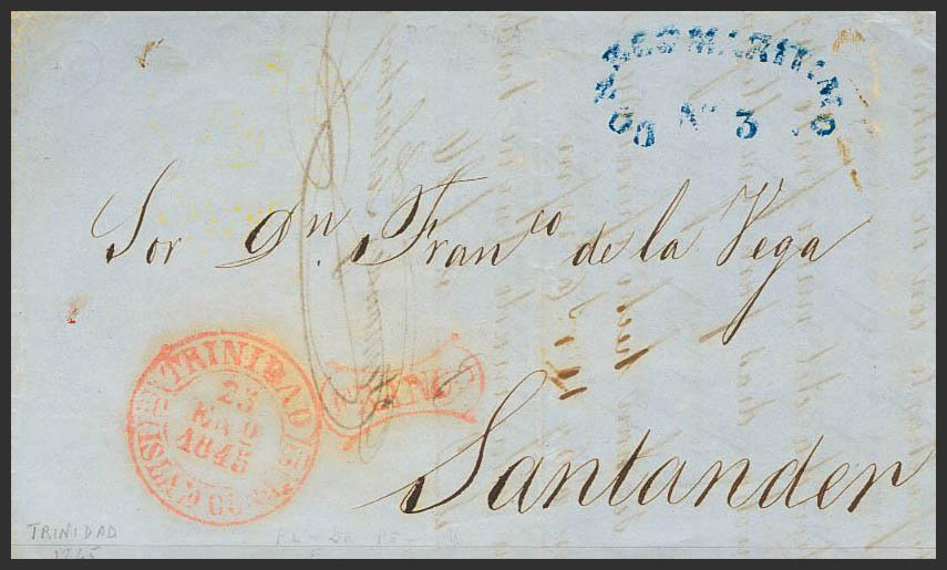 1845. TRINIDAD a SANTANDER. Baeza TRINIDAD / ISLA DE CUBA y marca FRANCO, de uso general (P.E.4) edición 2004. MAGNIFICA Y RARISIMA.