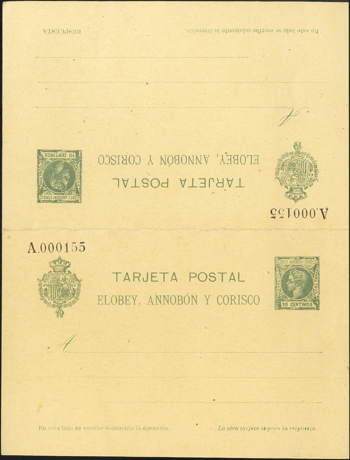 (★) EP4. 1905. 10 cts+10 cts verde sobre Tarjeta Entero Postal, de ida y vuelta. MAGNIFICA. Edifil 2020: 230 Euros