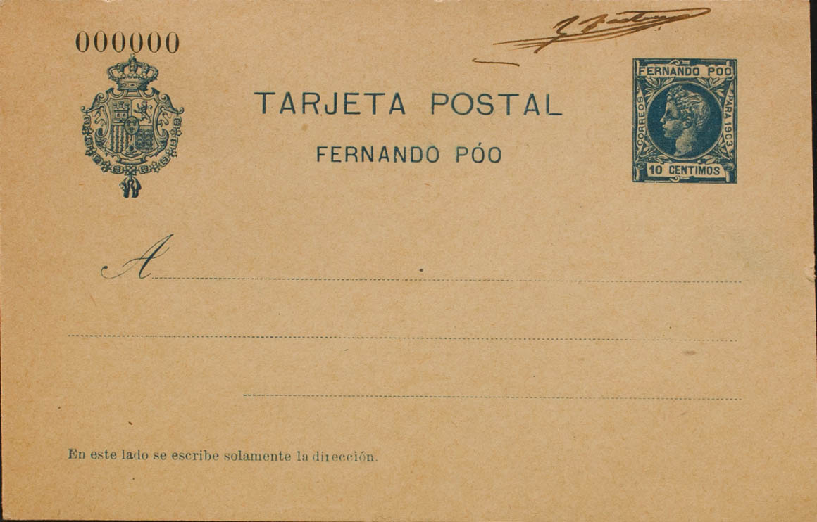 (★) EP17M. 1903. 10 cts azul sobre Tarjeta Entero Postal Nº000000. MAGNIFICA.