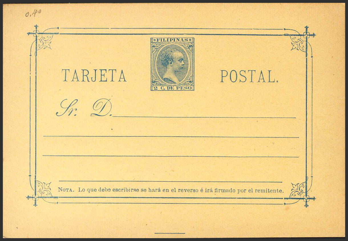 (★) EP10/11. 1896. 2 cts azul y 3 cts castaño sobre Tarjetas Entero Postales. MAGNIFICAS. Edifil 2019: 117 Euros