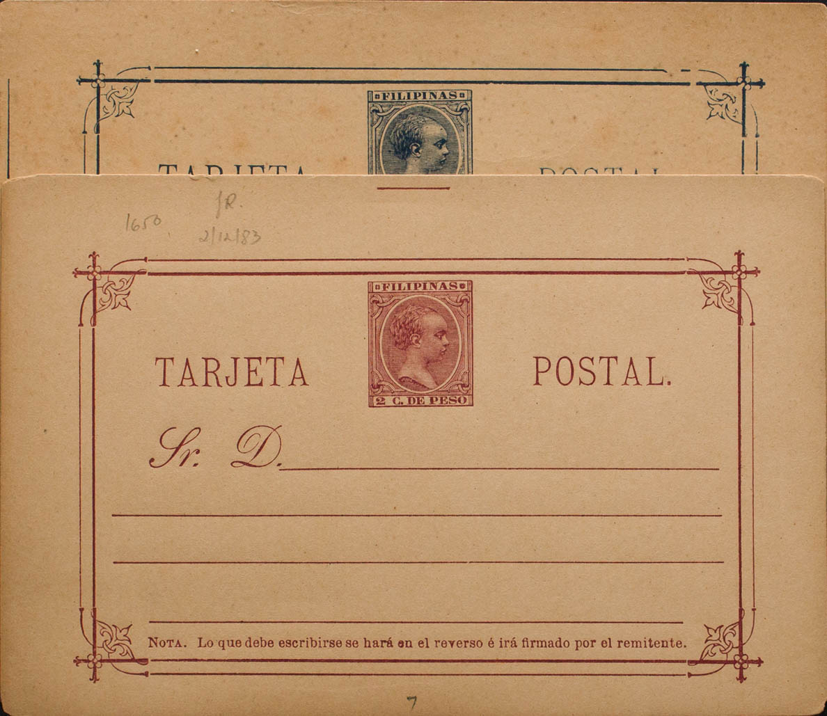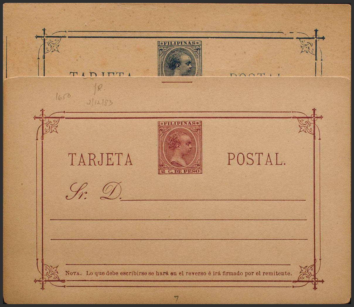 (★) EP8/9. 1894. 2 ctvos carmÃn y 3 ctvos azul sobre Tarjetas Entero Postales. MAGNIFICAS. Edifil 2018: 89 Euros