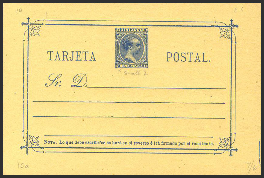 (★) EP10. 1896. 2 cts azul sobre tarjeta entero postal. MAGNIFICA. Edifil 2008: 55 Euros