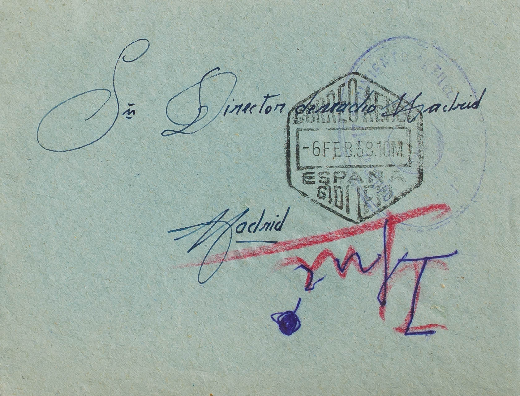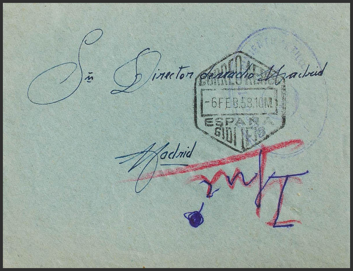 1958. GUERRA DE IFNI. SIDI IFNI a MADRID. Marca de franquicia REGIMIENTO ARTILLERIA, en violeta. MAGNIFICA Y RARA.