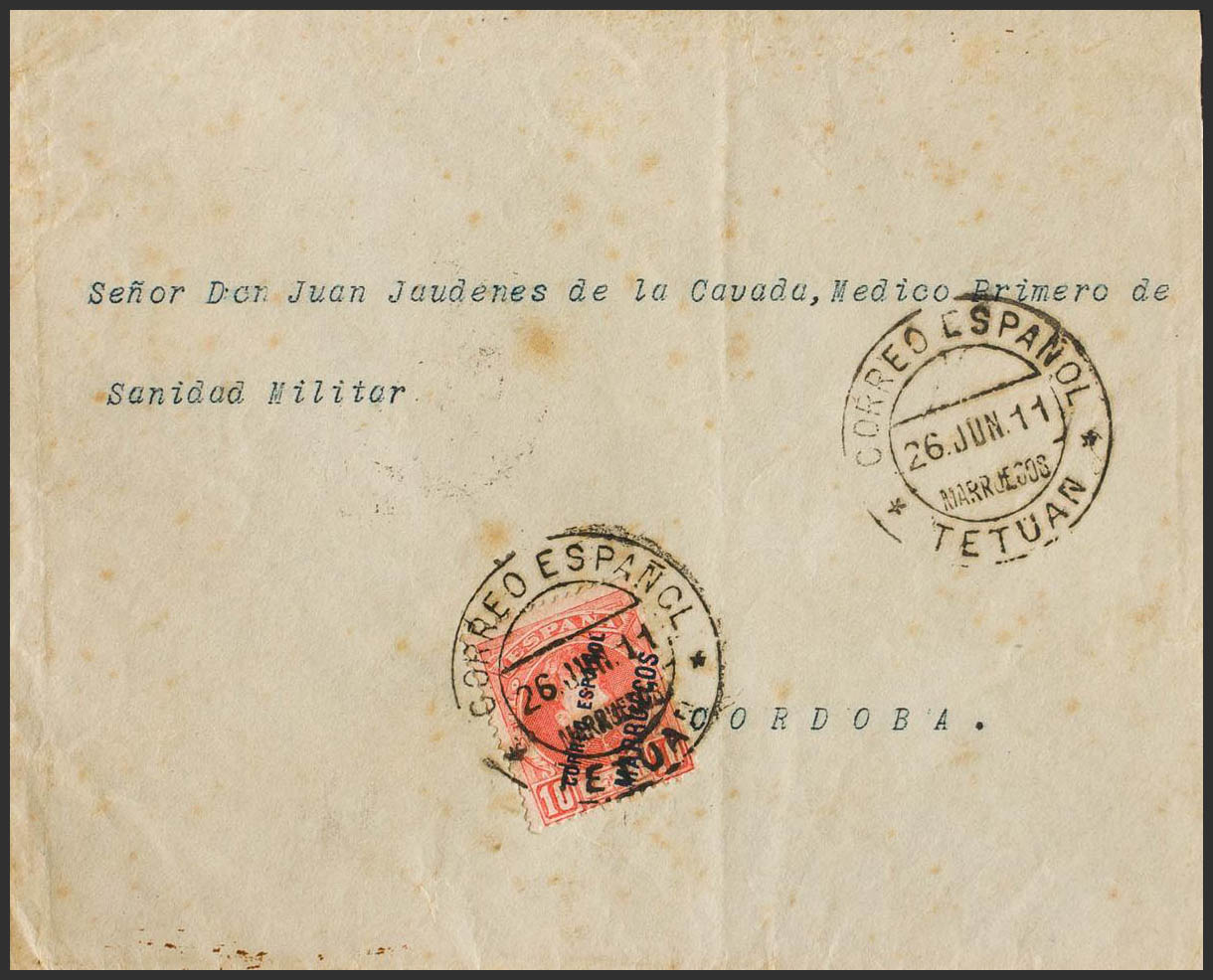 4. 1911. 10 cts rojo. TETUAN a CORDOBA. Al dorso llegada. MAGNIFICA Y RARA VERDADERAMENTE CIRCULADA.