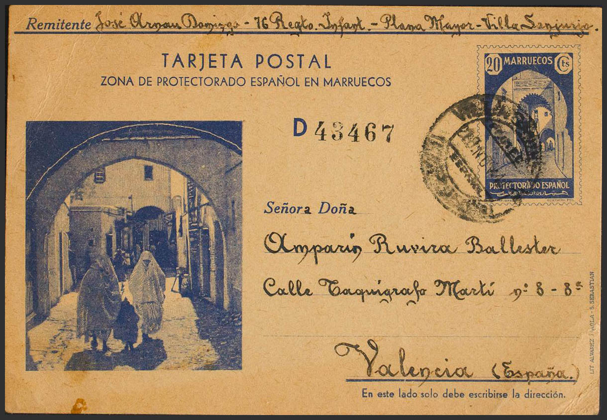 EP29. 1940. 20 cts azul (Tipo B) sobre Tarjeta Entero Postal de VILLA SANJURJO a VALENCIA. MAGNIFICA Y MUY RARA.