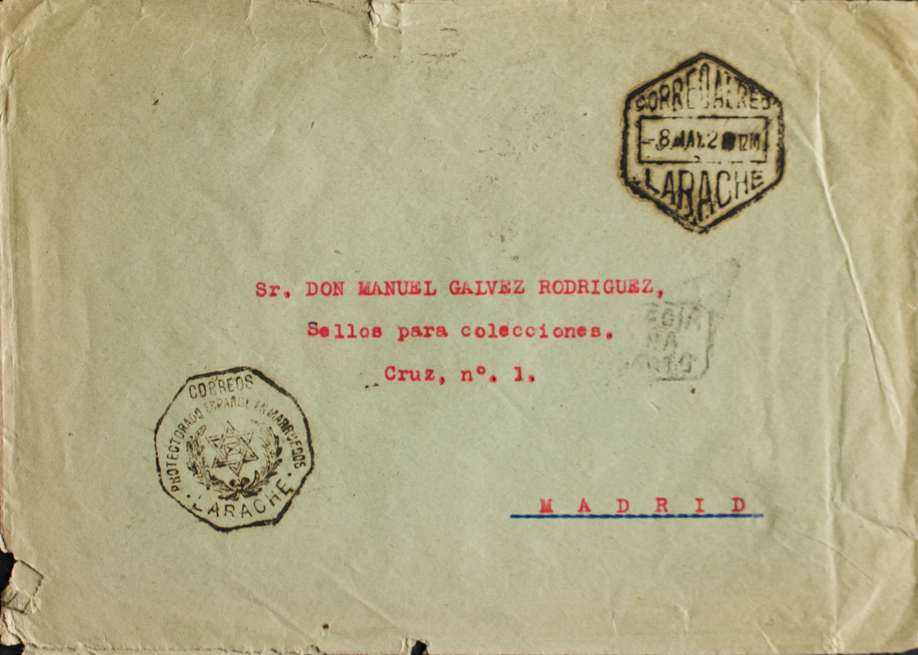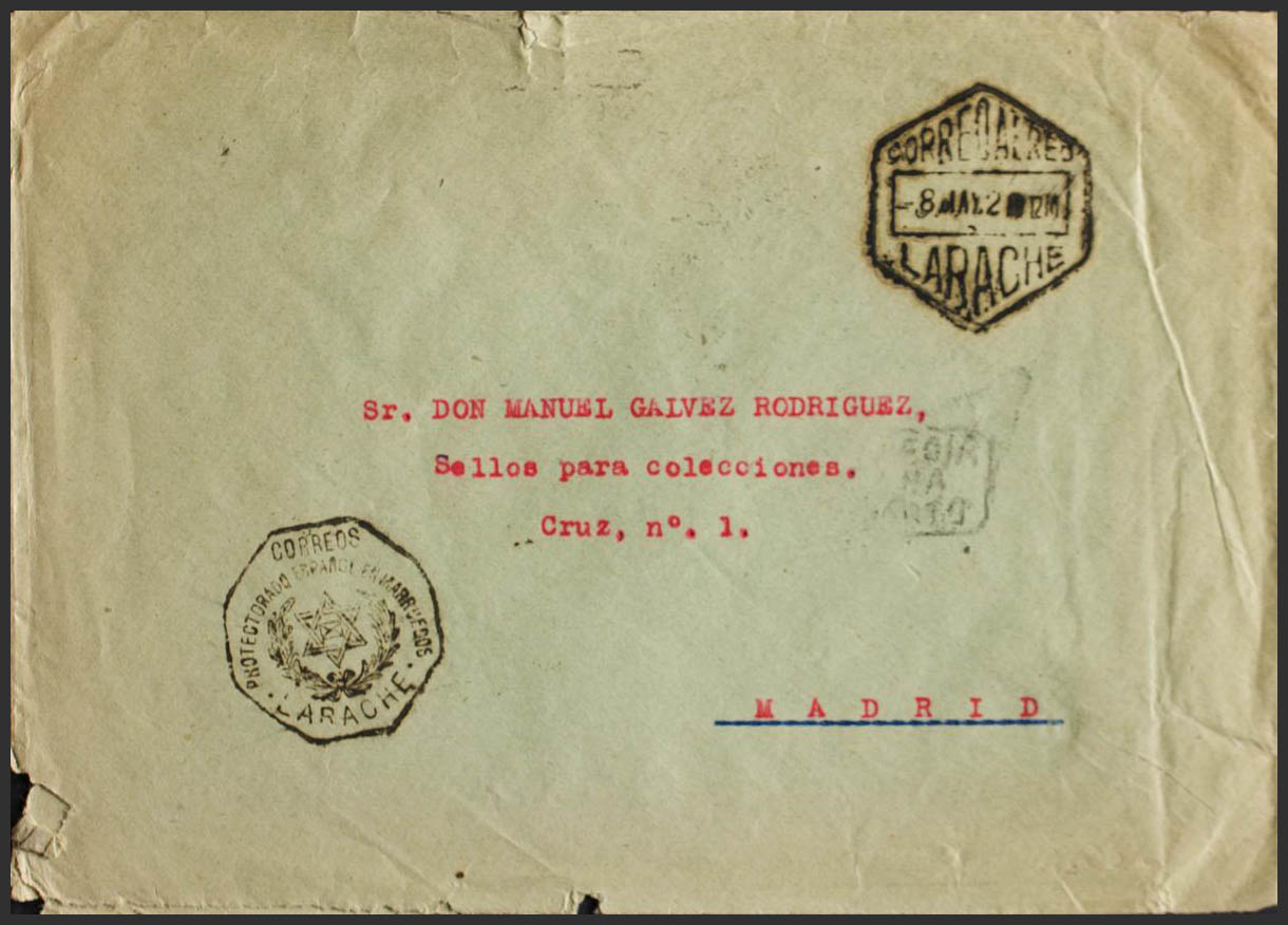 Marruecos. CORREOS / PROTECTORADO ESPAÑOL DE MARRUECOS / LARACHE, al dorso llegada. MAGNIFICA.