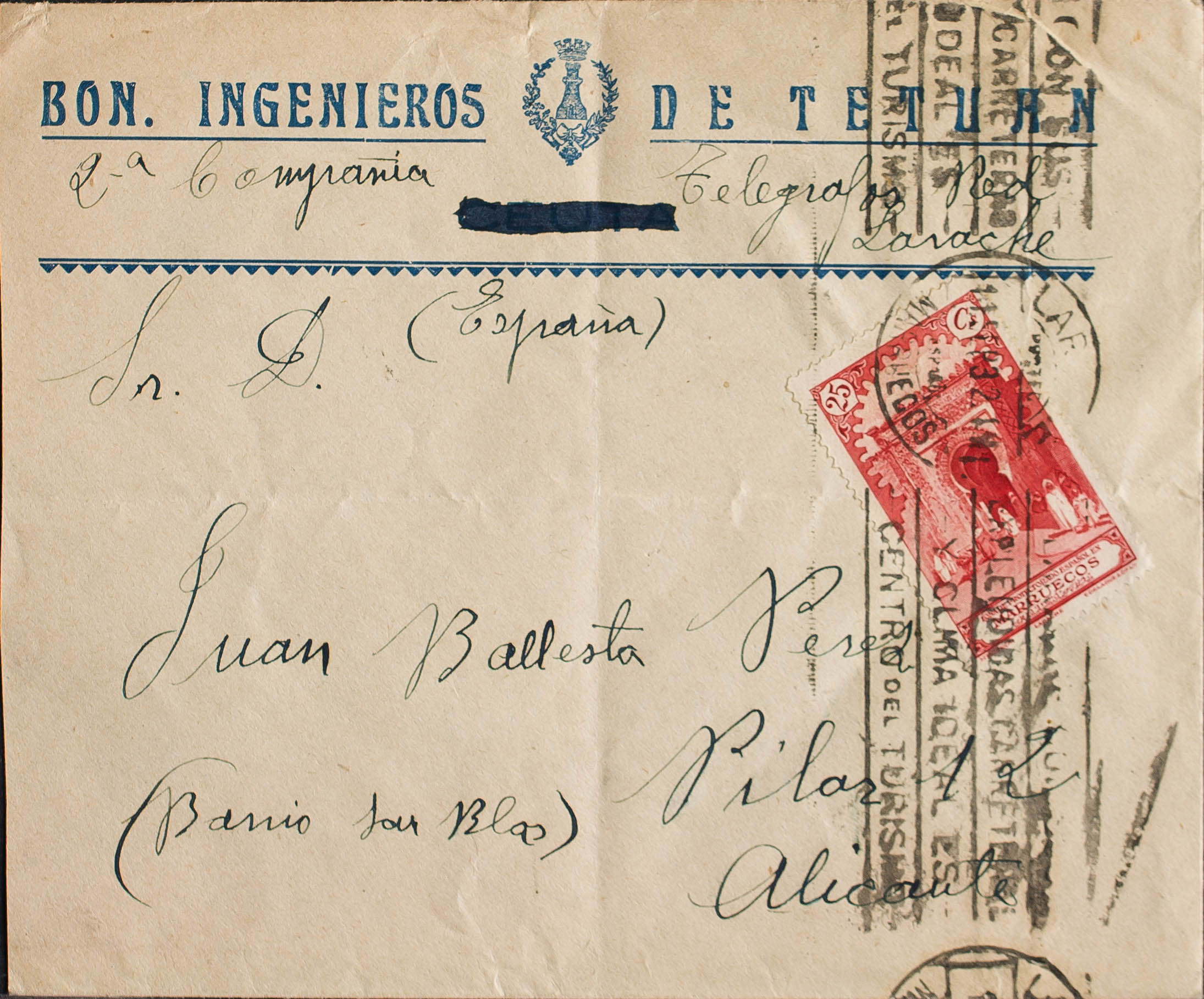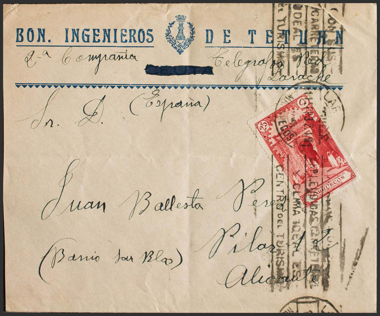 Marruecos. Al dorso marca TELEGRAFIA MILITAR / ESTACION DE NADOR y de llegada. MAGNIFICA.