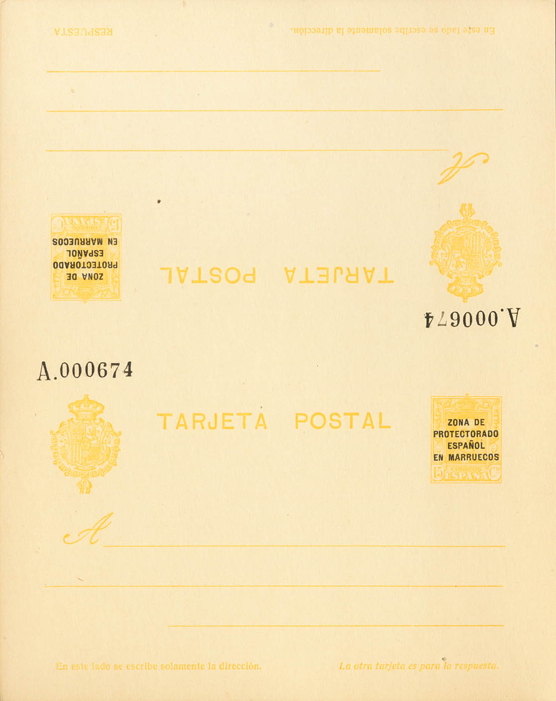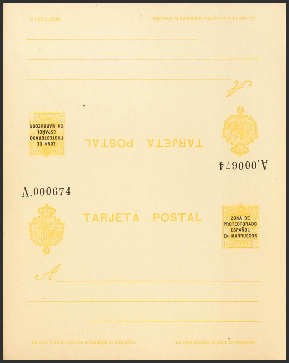 (★) EP19. 1924. 15 cts + 15 cts amarilla sobre Tarjeta Entero Postal, de ida y vuelta (plancha). MAGNIFICA Y RARISIMA. Edifil 2019: 885 Euros