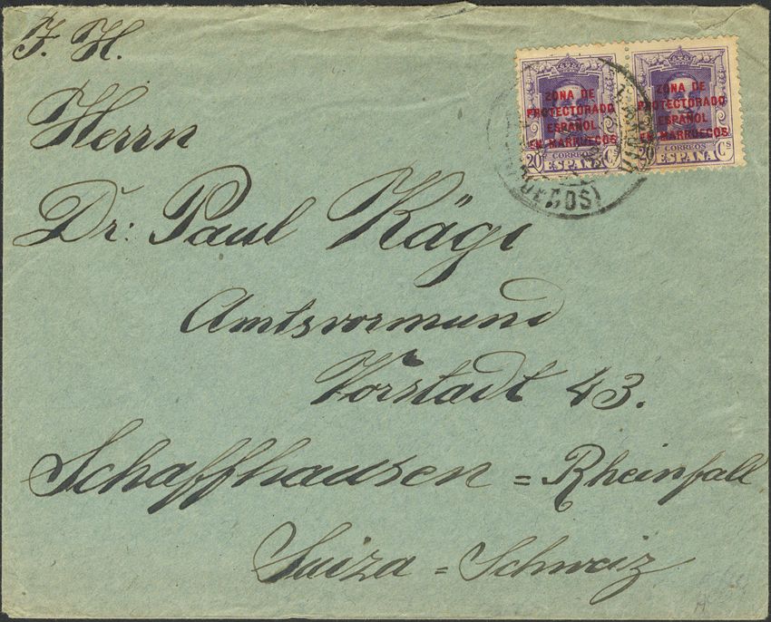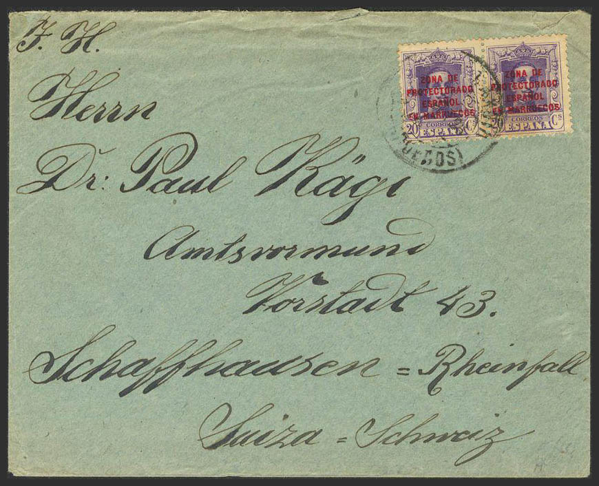 85(2). 1926. 20 cts., pareja. CEUTA a SCHWEIZ (SUIZA). Matasello CEUTA / (MARRUECOS).