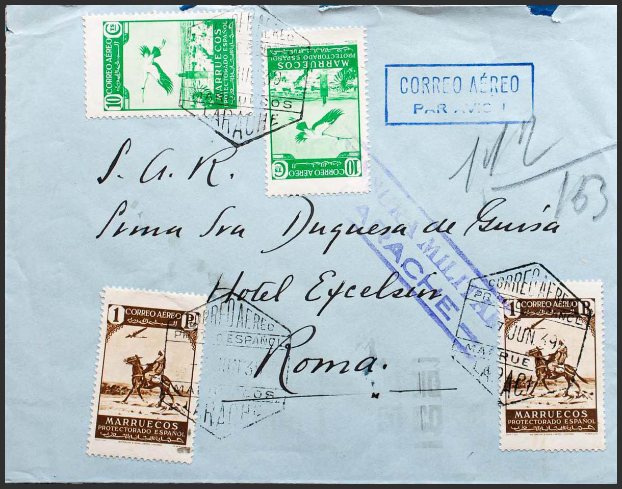 Marruecos. CORREO AEREO / LARACHE, al dorso llegada. MAGNIFICA.
