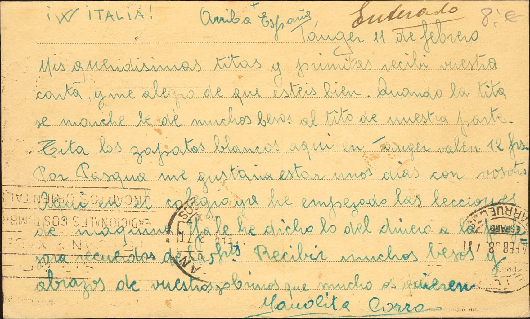 Marruecos. Correo Interior de TETUAN. Al dorso llegada. MAGNIFICA.