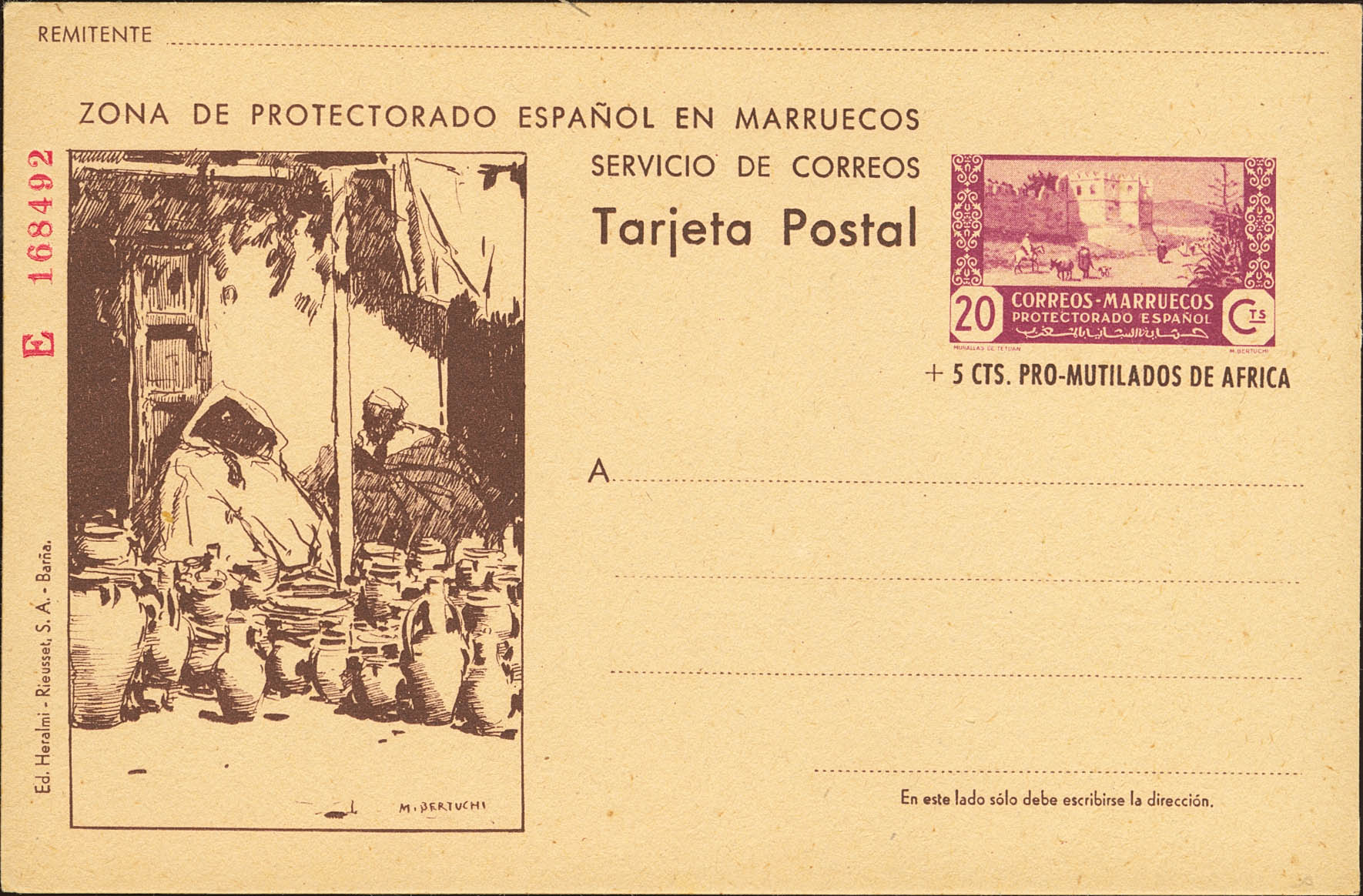(★) EP98. 1944. 20 cts + 5 cts lila y castaño (conservación habitual) sobre Entero Postal (Tipo IV, Serie E). MAGNIFICO. Edifil 2024: 295 Euros