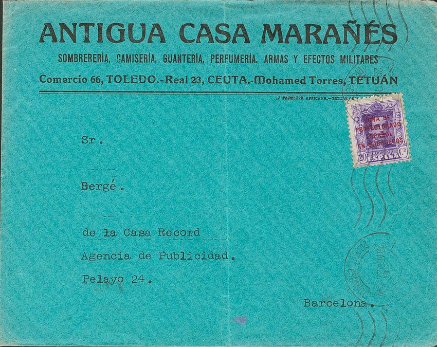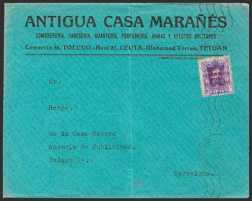 Marruecos. TETUAN / PROTECTORADO ESPAÑOL, al dorso llegada. MAGNIFICO.