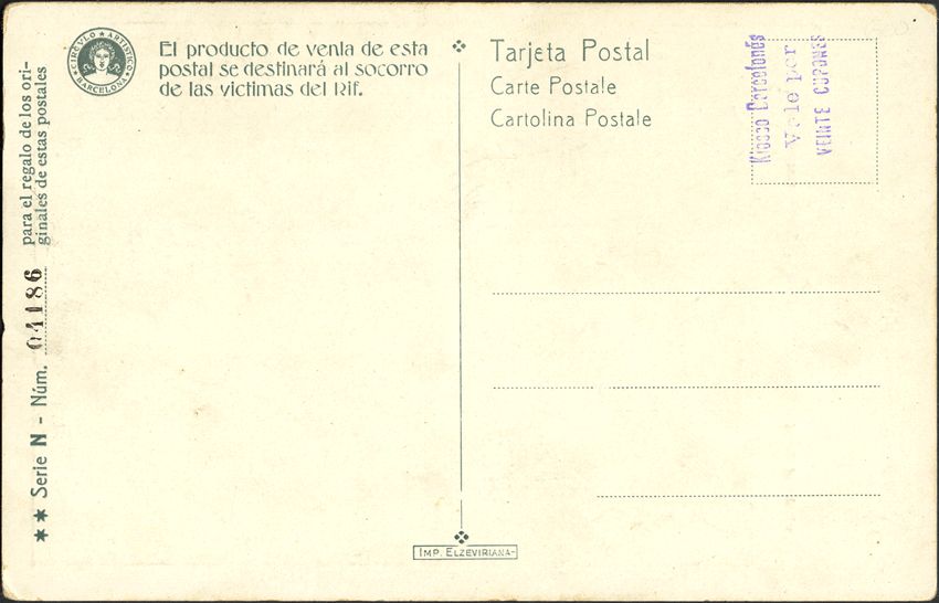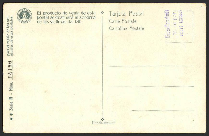Marruecos. Tarjeta Postal SOCORRO VICTIMAS DEL RIF. Sin circular. MAGNIFICA.