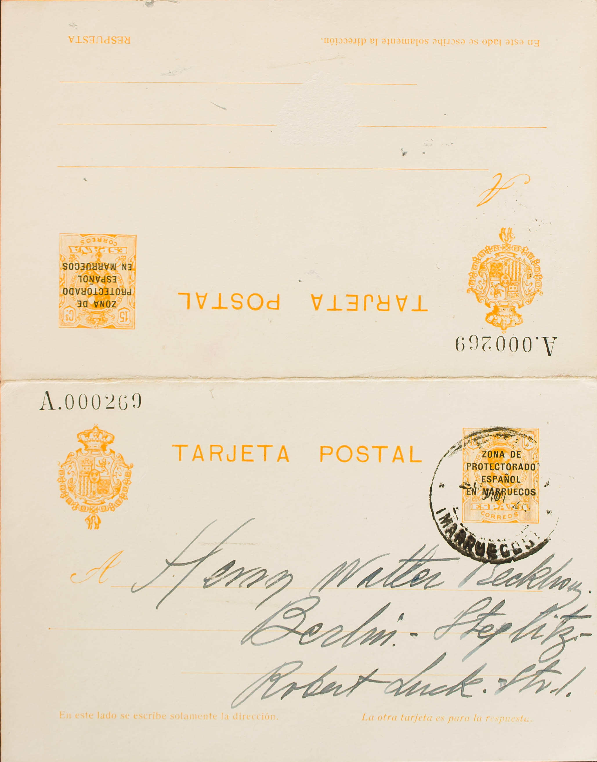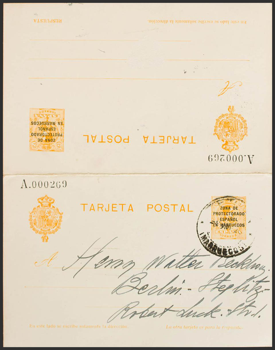 (★) EP17. 1926. 15 cts + 15 cts amarillo sobre Tarjeta Entero Postal de ida y vuelta. Matasellada a la ida pero sin texto. MAGNIFICA. Edifil 2015: 220 Euros