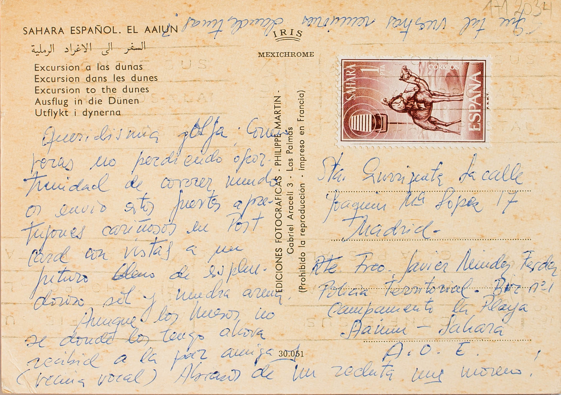 231. 1965. 1 pts castaño. Tarjeta Postal de EL AAIUN (Policia Territorial Campamento La Playa) a MADRID. MAGNIFICA.