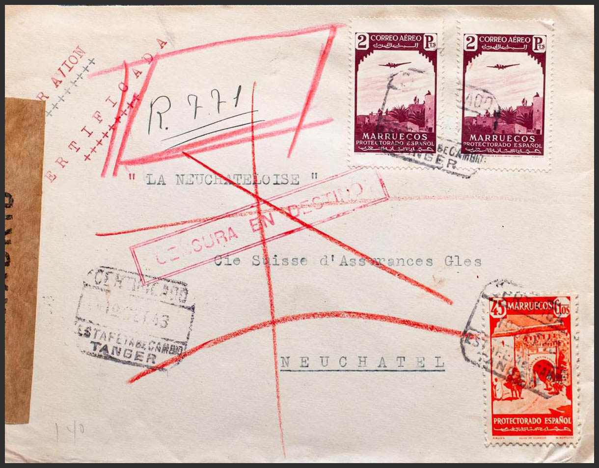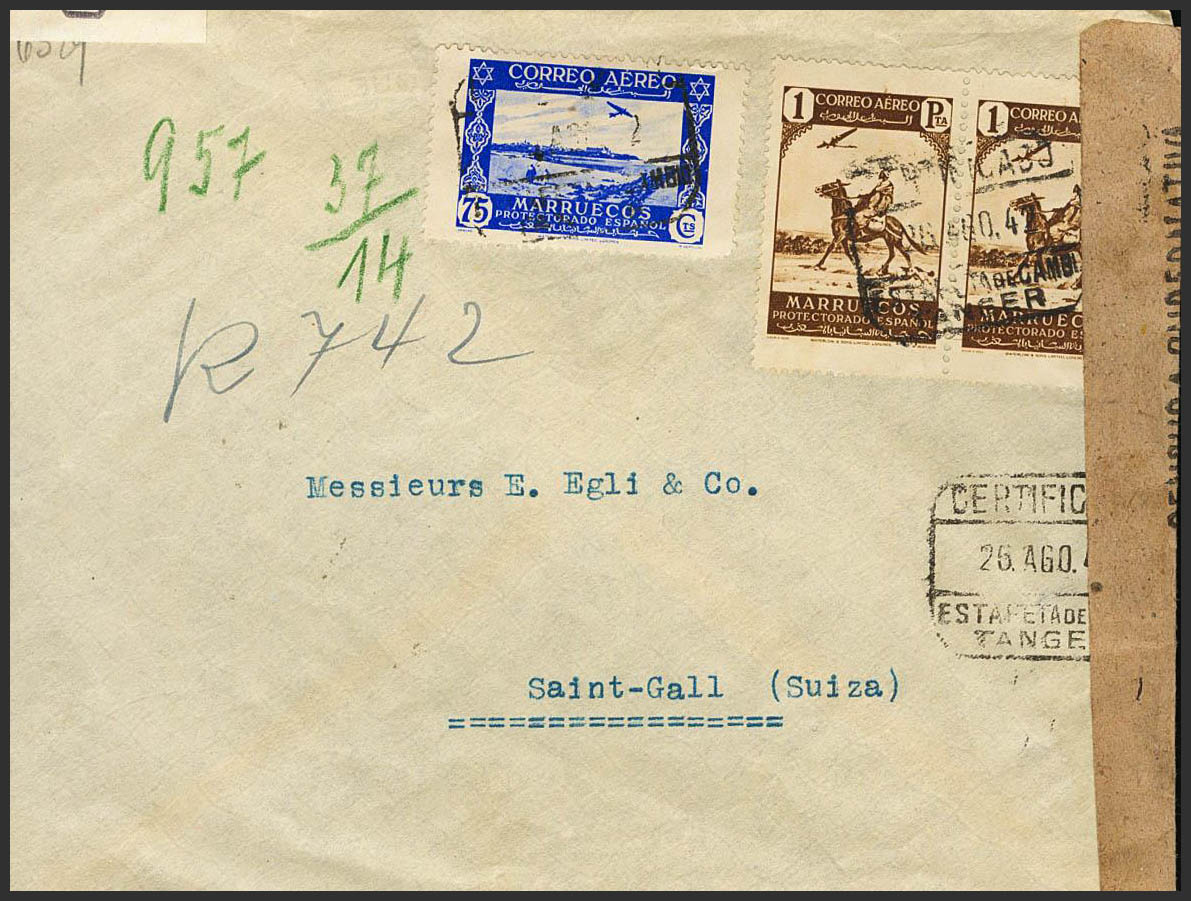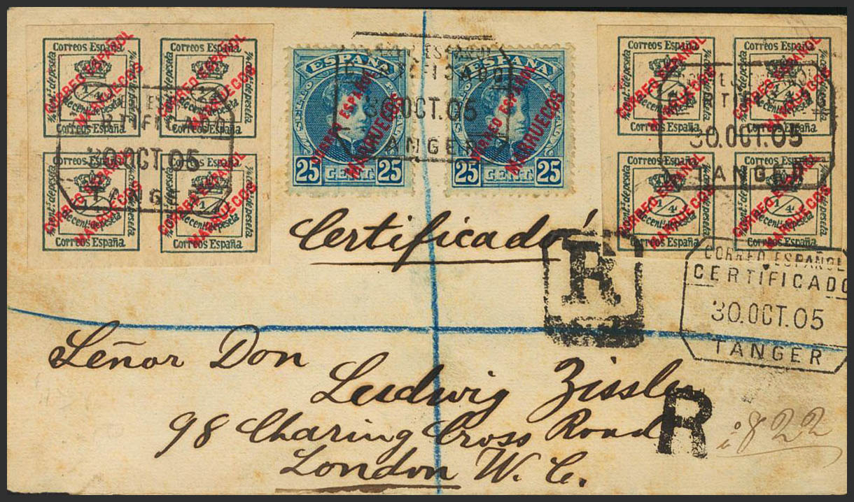 Tánger. CERTIFICADO / TANGER, al dorso llegada. MAGNIFICA.