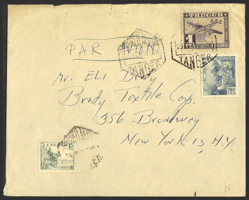 Tánger. Al dorso Tránsito Correo Aéreo. MAGNIFICA.