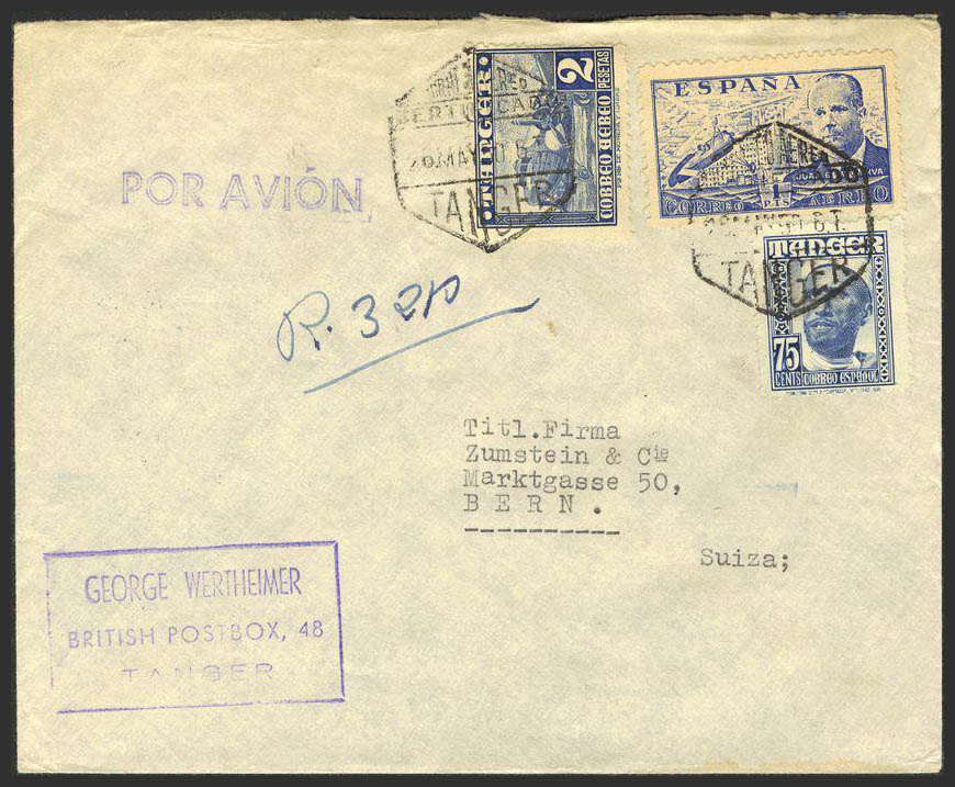 Tánger. MAGNIFICO FRANQUEO MIXTO ESPAÑA-TANGER.