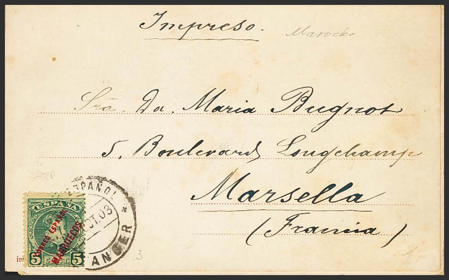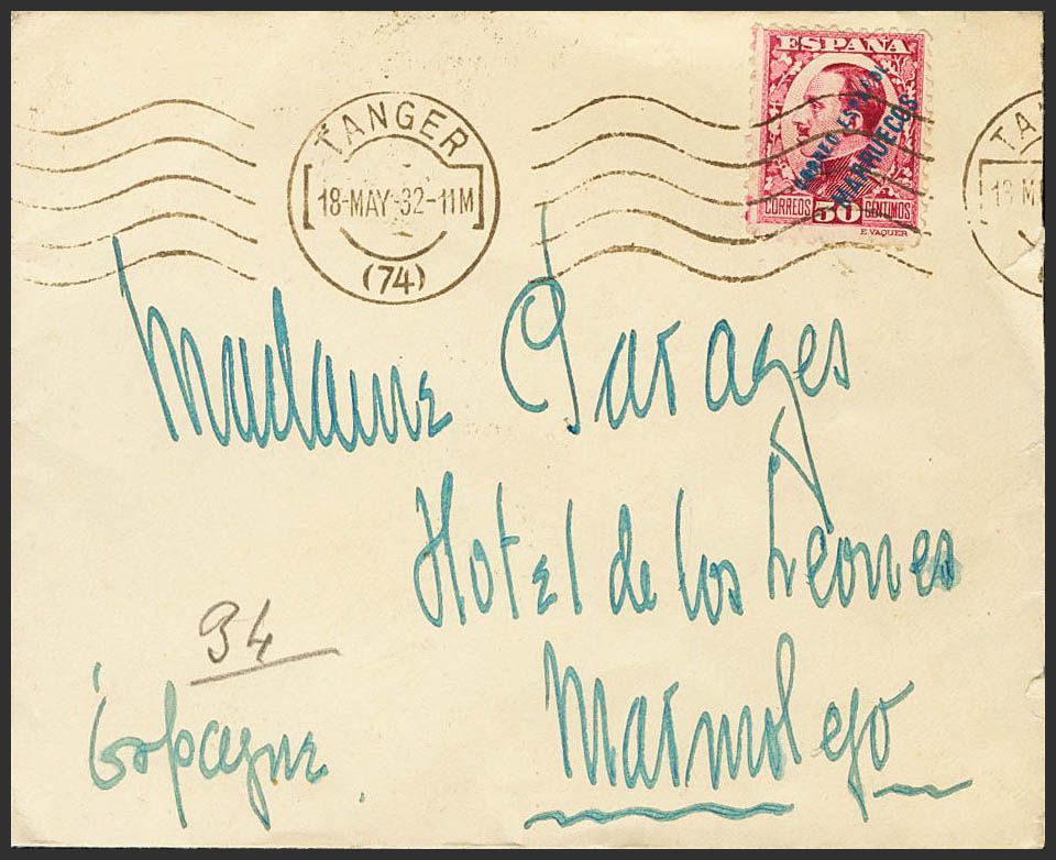 Tánger. Franqueo mixto ESPAÑA-TANGER.