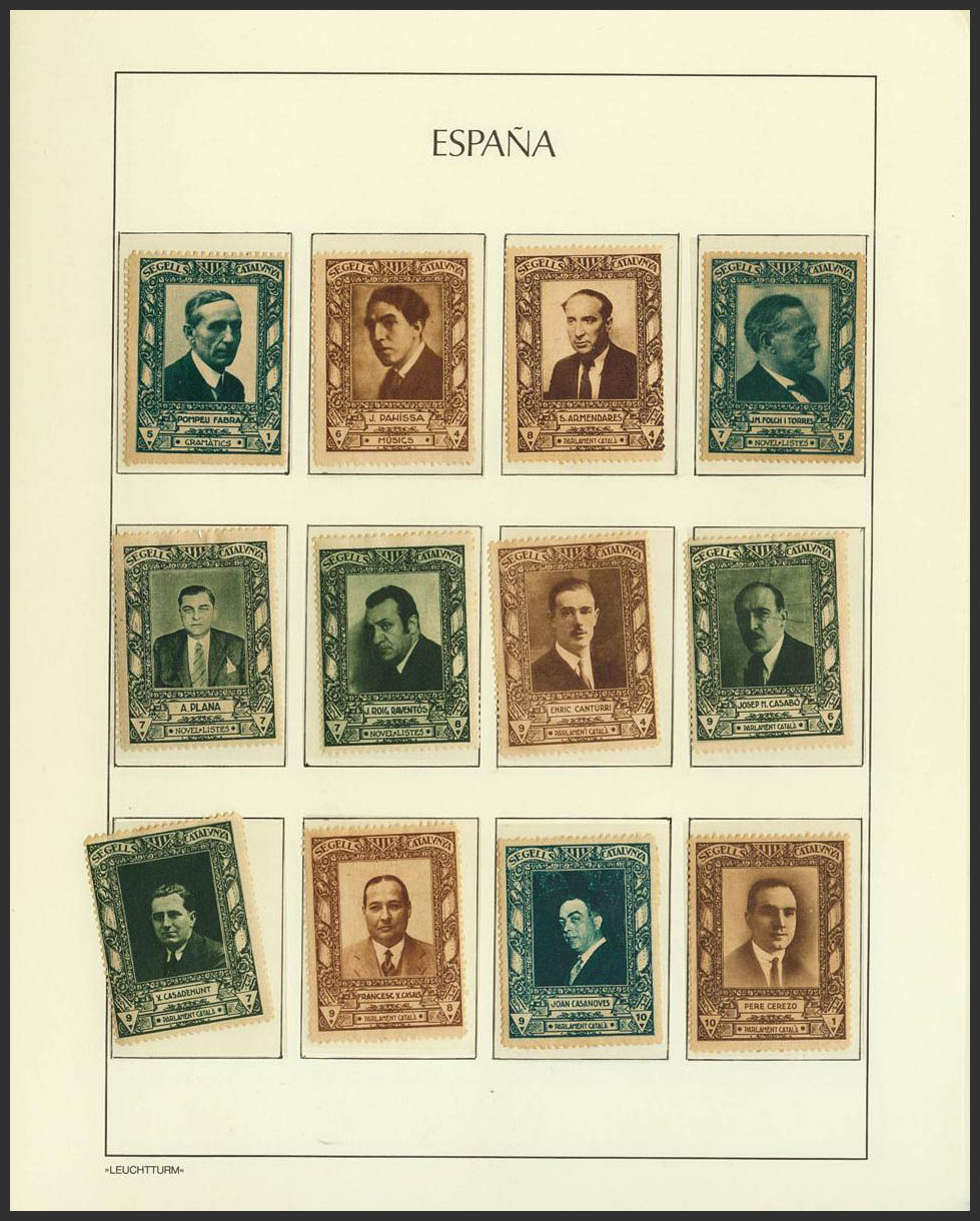 ★(1936ca). Conjunto de viñetas SEGUELLS DE CATALUNYA que incluye series dedicadas a escritores, parlamentarios, novelistas, monumentos, etc. MAGNIFICO Y MUY RARO.