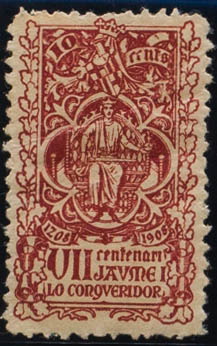 (★)1908. 10 cts castaño rojo. VALENCIA. VII CENTENARI JAUME I. BONITO Y RARO, NO RESEÑADO.