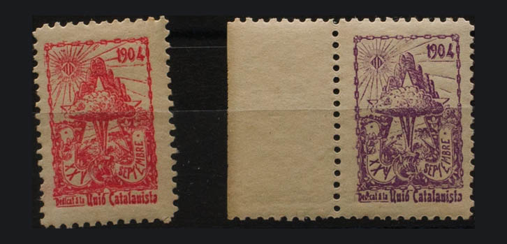 ★1904. Dos viñetas en rosa y lila. CATALUÑA UNIO CATALANISTA. MAGNIFICAS Y RARAS. (Nathan 54)