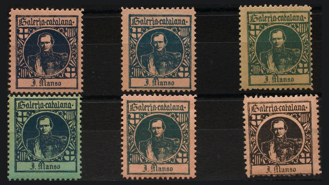 ★/(★)(1900ca). Seis viñetas en diferentes colores y papeles. CATALUÑA J. MANSO. MAGNIFICAS. (Nathan 36-9)